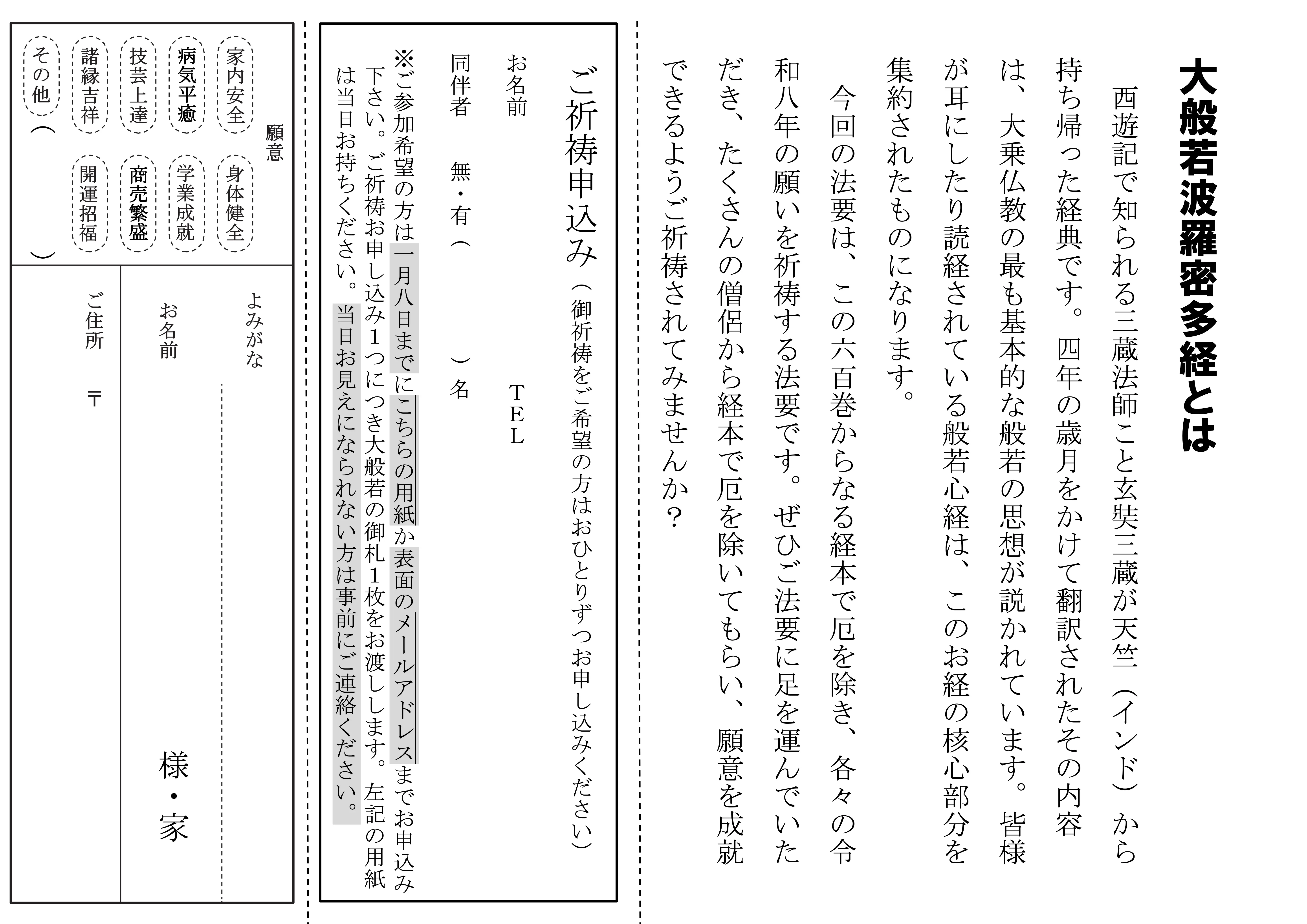 大般若波羅蜜多経は西遊記で知られる三蔵法師こと玄奘三蔵が天竺(インド)から持ち帰った六百巻にも及ぶ経典で、大乗仏教の基本となるものです。